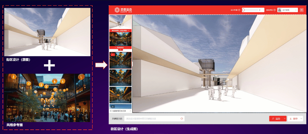 靈感渲染是一款基于AI技術(shù)的藝術(shù)靈感渲染器,區(qū)別于傳統(tǒng)的渲染器,它更多的是為設(shè)計(jì)師在設(shè)計(jì)過程中提供多樣性靈感,輔助設(shè)計(jì)表達(dá)。